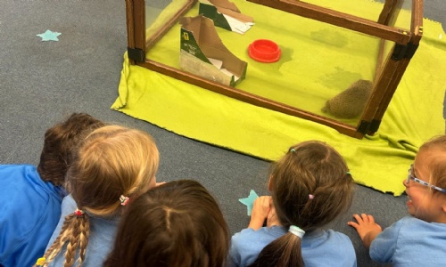 Reception children meet Harry and Henry the hedgehogs